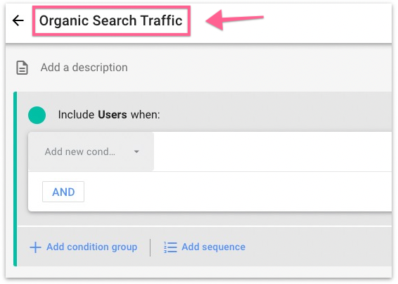For the first segment, rename the segment to Organic Search Traffic.