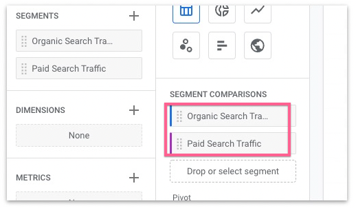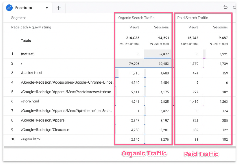 In this document we’ll compare 2 traffic segments. Specifically Organic Search traffic vs Paid Search traffic.