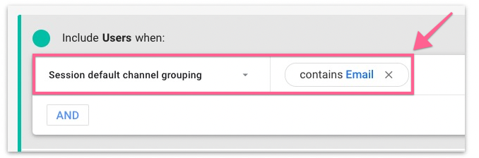 If you want to create a segment (report) for EMAIL traffic, select “Session Default Channel Grouping” from the condition filter and set the value to Contain “Email”.