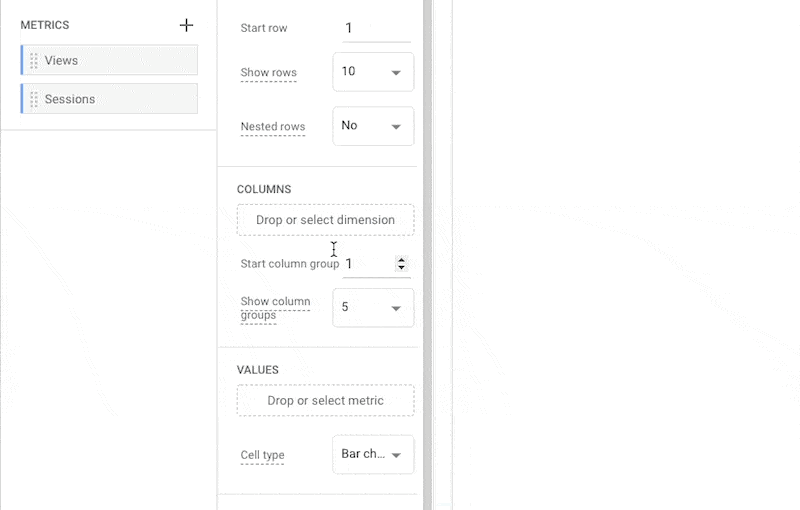 Then drag the “Views” and “Sessions” to the Value section.
