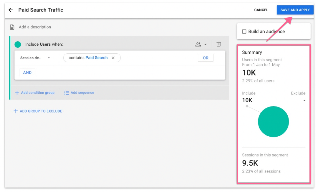 You can then see the number of users in this segment. Click “SAVE AND APPLY”.