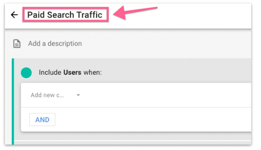Rename the segment to “Paid Search Traffic”.