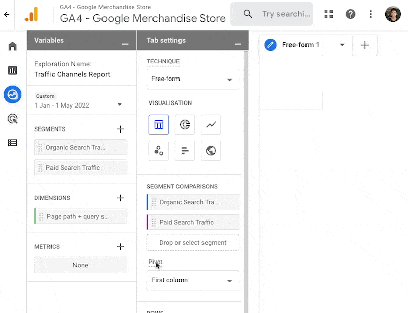 Note: The Exploration reports in Google Analytics 4 allows you to explore in detail and gain deeper insights about your users and their journey. You create segments, sort and drill into the data, and share your explorations with other users of the same Google Analytics property.