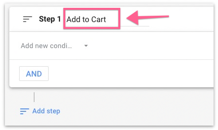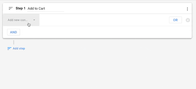 Search for the condition page_location, set the filter to contains, and set the value to the URL of your add to cart page. Since the URL of Google’s merchandise store ends with basket.html, we’ll use that instead. Then click “Apply”.