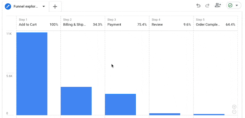 Ideal Outcome: Create a report that visualizes the checkout funnel of an eCommerce store.