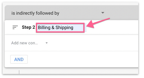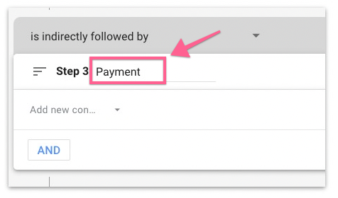 Search for the condition page_location, set the filter to contains, and set the value to the URL of your billing page. Since the URL of Google’s merchandise store ends with payment.html, we’ll use that instead. Then click “Apply”.