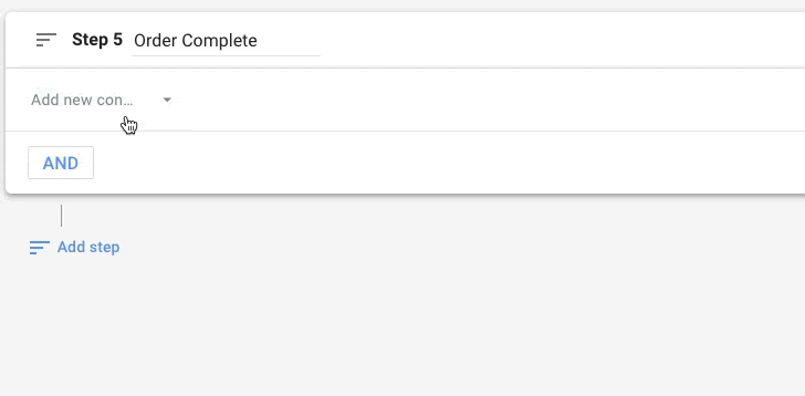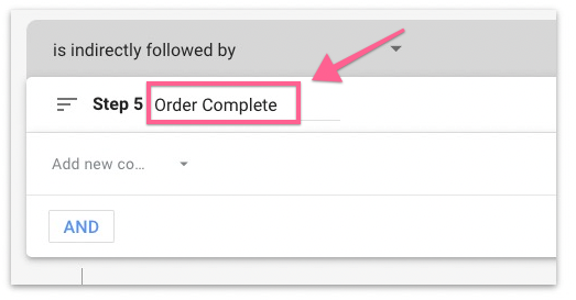 Search for the condition page_location, set the filter to contains, and set the value to the URL of your billing page. Since the URL of Google’s merchandise store ends with ordercompleted.html, we’ll use that instead. Then click “Apply”.