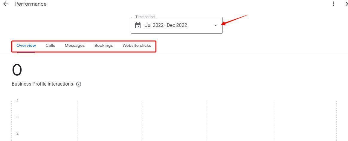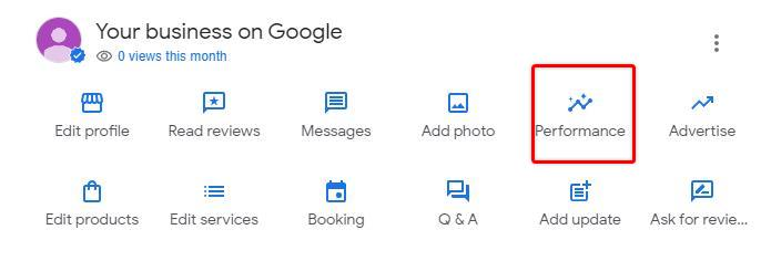 Sign in to your Google Business Profile account dashboard and select “Performance”.