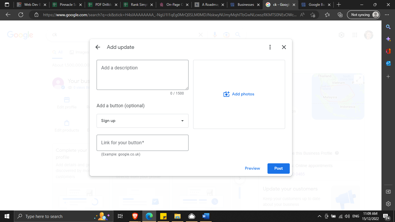 Head back to your “Add Update” page on Google Business Profile and add the optimized photos/videos to the post.