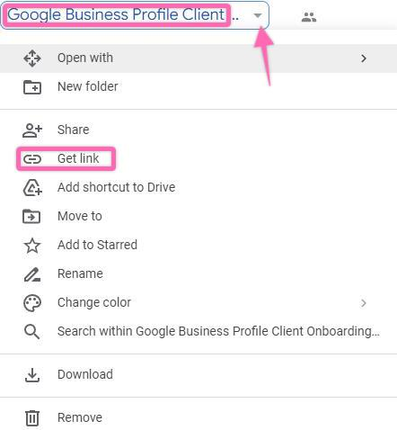 Link to your Google Business Profile Client Onboarding folder and subfolder