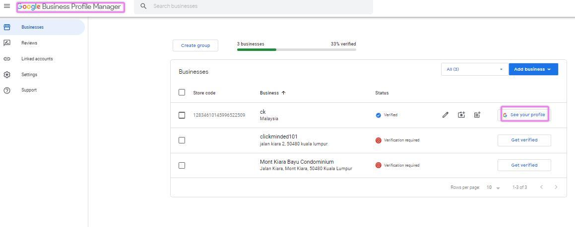Click the “See your profile” according to the business you will work on. Ensure you are on the Google Business Profile Manager page, not your account page.