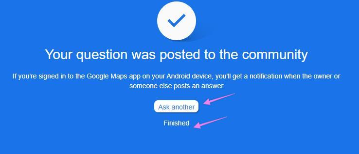 From here, you can continue adding more questions by clicking on “Ask another” or “finished” to resume later. We recommend adding as many questions as possible and answering them later.