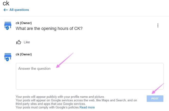 You will be directed to your Google page. Click on the “Q&A”.