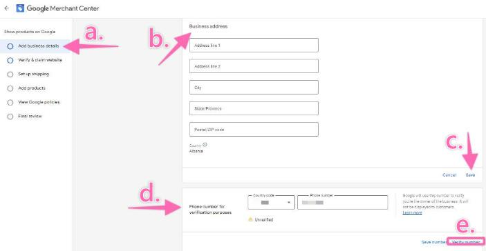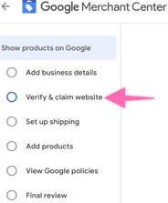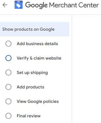 Next, you will need to provide business details, including shipping and product information, and verify & claim your Google Merchant Center website.