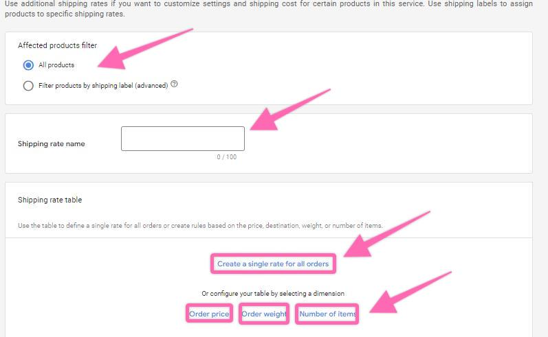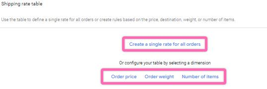 c. Scroll down. You can choose to create a single rate for all orders or configure your table by selecting a dimension.