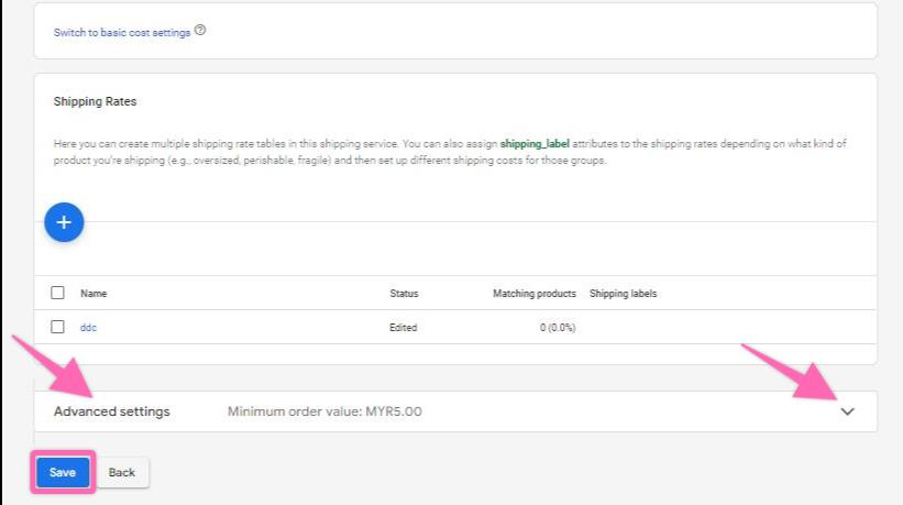 [Optional} Alternatively, you may go back to the first page of advanced settings where the plus button is visible. Scroll down, and enter a minimum order value for all products. You can choose to ignore this if you do not have a minimum order. Click “Save”.