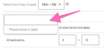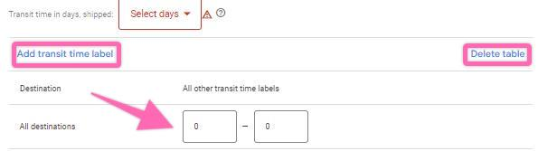 Add transit time under “All destinations”. Click “Add transit time label” on the top and enter a label.