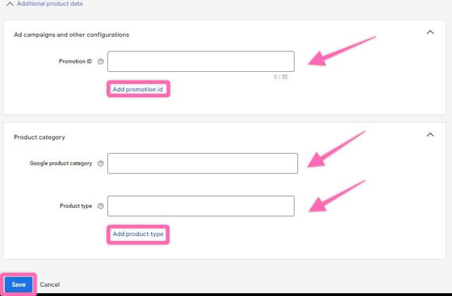 iv. Click “Add promotion id” and/or “Add product type” before you hit “Save”.