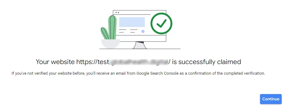 Once you have verified your website, the screen below will appear. Click “Continue”.