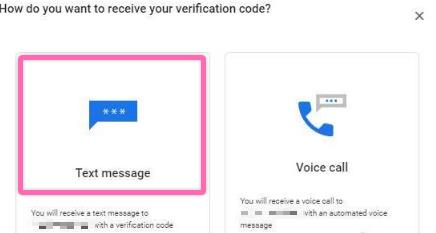 Next, there will be a pop-up for you to choose how you want to verify. Click “Text message”.