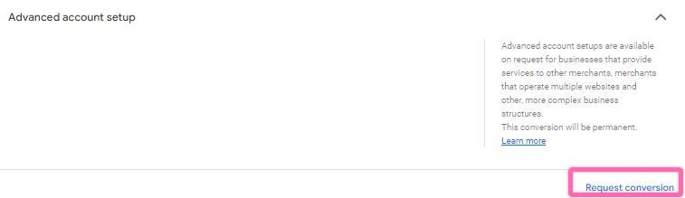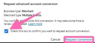 A pop-up to confirm your business will appear. Check the box and click “Request conversion”.