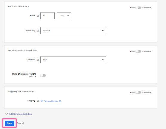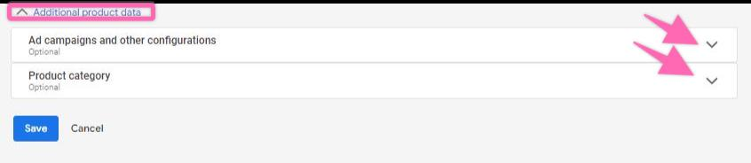 ii. [Optional] If you have ad campaigns and other configurations or product categories that you would like to add, click “Additional product data”.