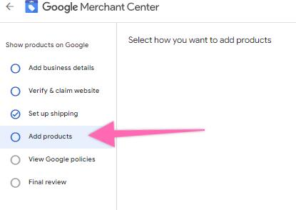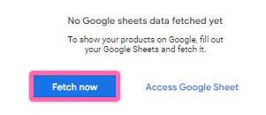 vi. Once the details are filled out, go back to your Google Merchant Center setup page and select “Add products”. Click “Fetch now” for Google to process the product data or excel sheet.