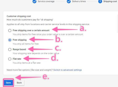 d. If your shipping cost is flat rated, key in your order price under “All orders shipped for”.
