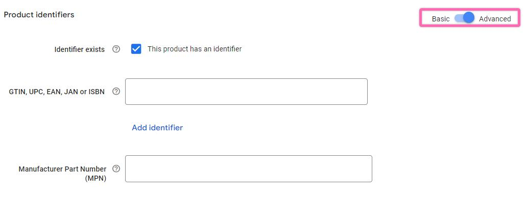 i. [Optional] To add more product information, you can choose to switch from the basic to the advanced setting on your right. Add the details according to each section.