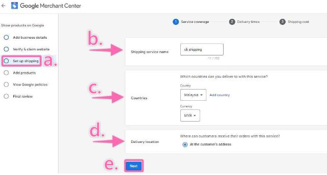 To set up shipping, you will need to key in the details, such as the shipping service name, countries, and delivery location.