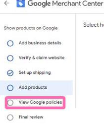 Go to “View Google policies” on the setup page of your Google Merchant Center.