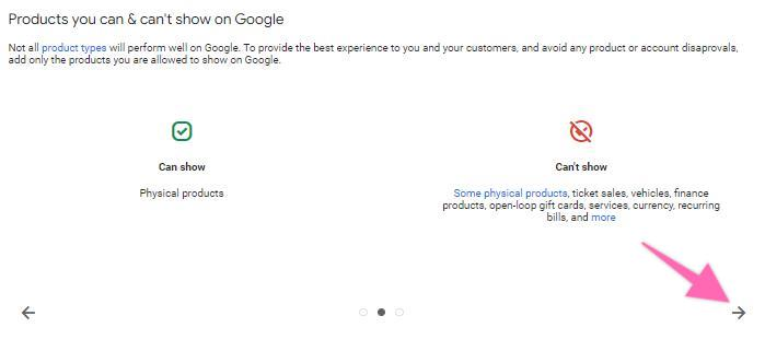 Next, click the arrow on your bottom right once you have acknowledged products that you can and cannot show in the store.
