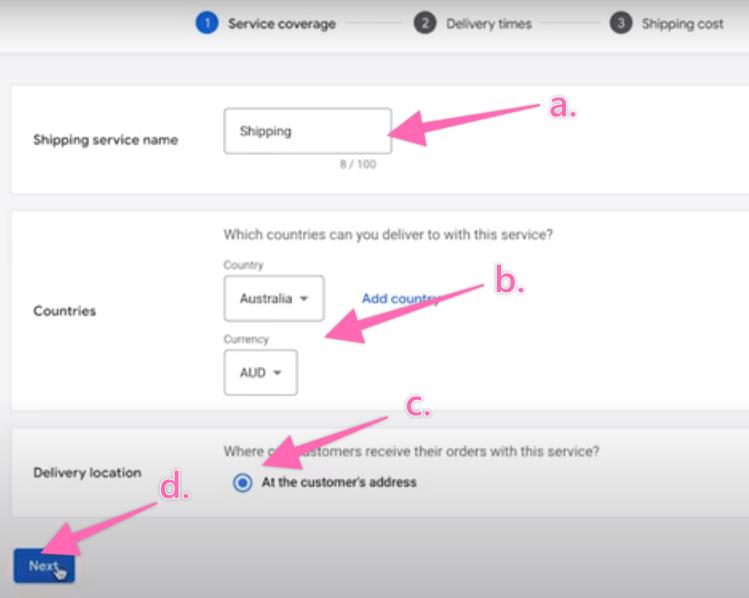 Next, set up the shipping cost for the service.