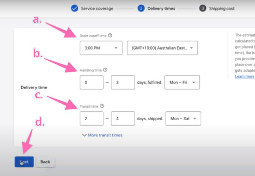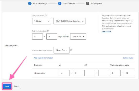 To add more transit times, click “More transit times”.
