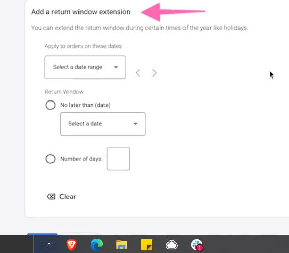 If you have a return policy with an extension period, input your date range, date no later than, and the number of days for an extended return type.