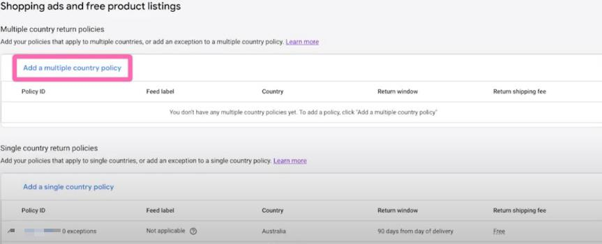 [Optional] You can add a multiple-country policy if you have one by returning to the “Return policy” tab, as illustrated below. Repeat the steps from above.