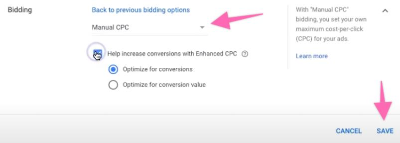 Enhanced cost-per-click (ECPC): This is designed to help boost your conversions for manual bidding by altering your manual bid if Google thinks it is more likely to result in a sale. This is more favored by retailers because it focuses more on the end sales results than driving traffic.