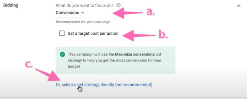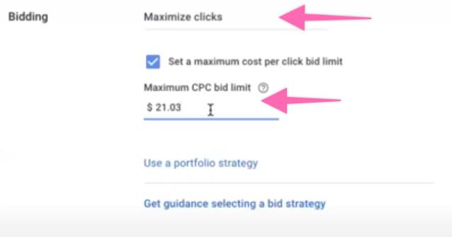 Select a bid strategy in the drop-down menu. This includes either maximizing conversion, maximizing conversion value, or maximizing clicks.
